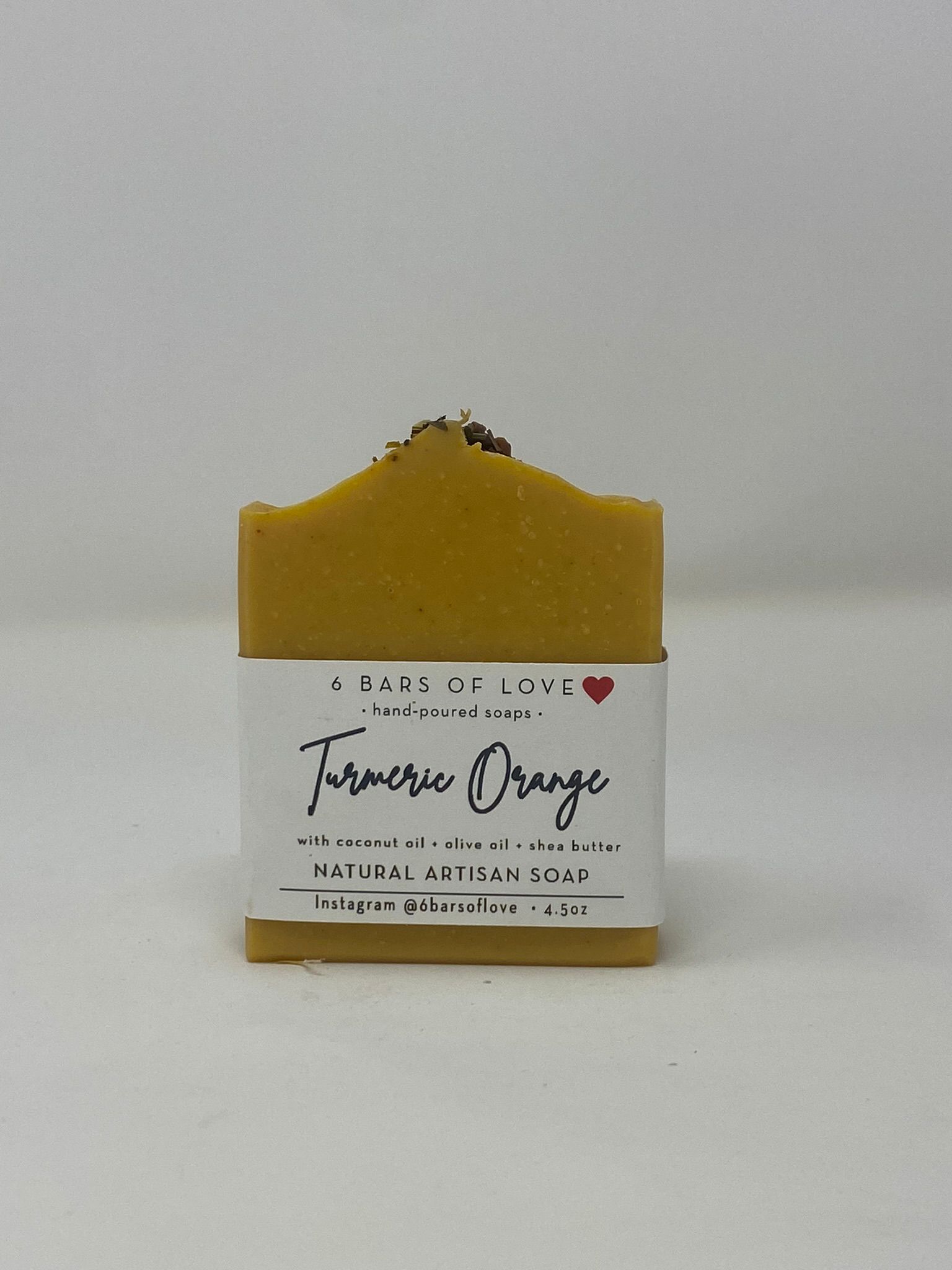 Ingredients: Saponified olive oil, coconut oil, shea butter, castor oil, water, organic turmeric powder, manuka honey, essential oil, fragrance oil.