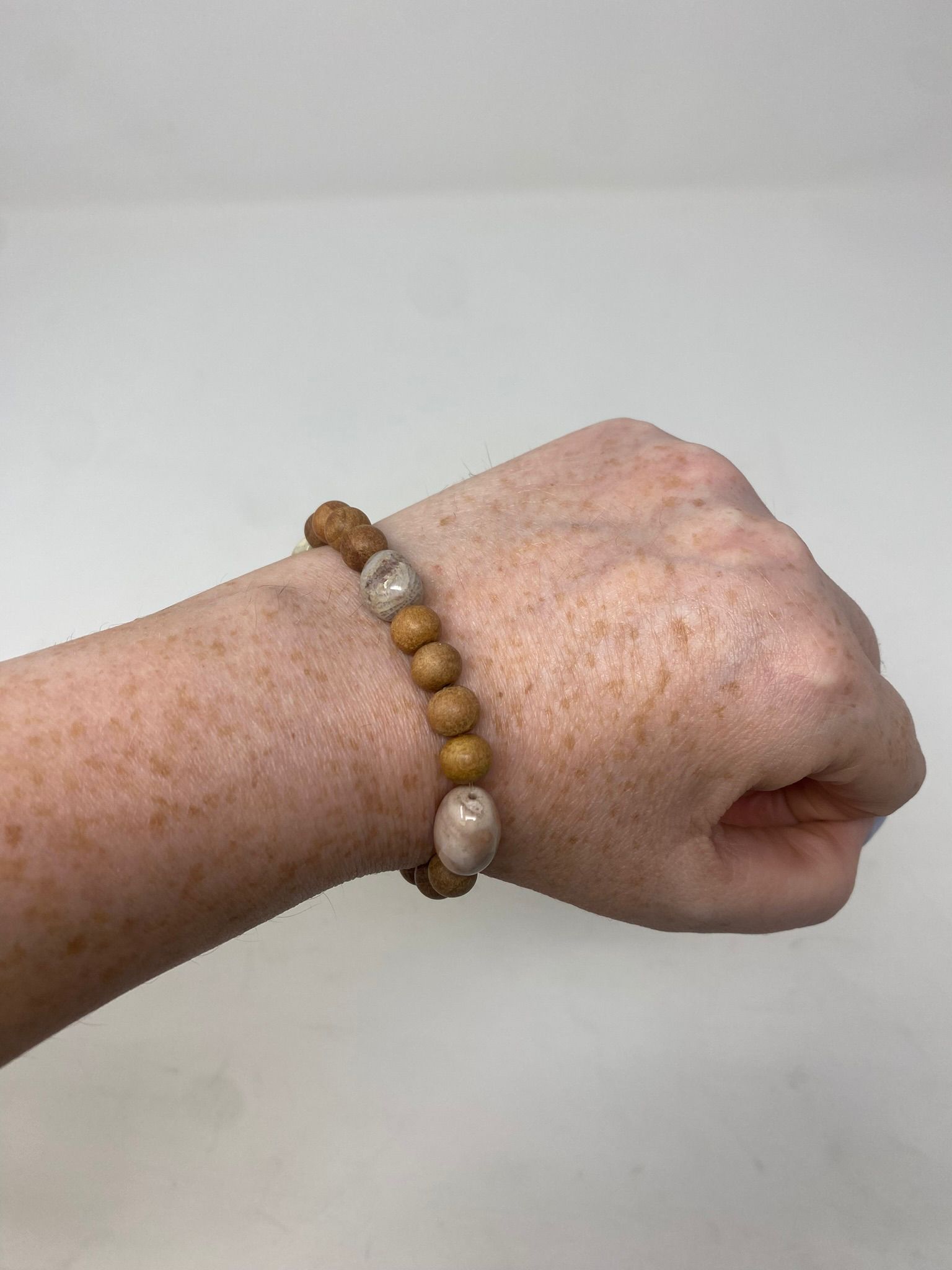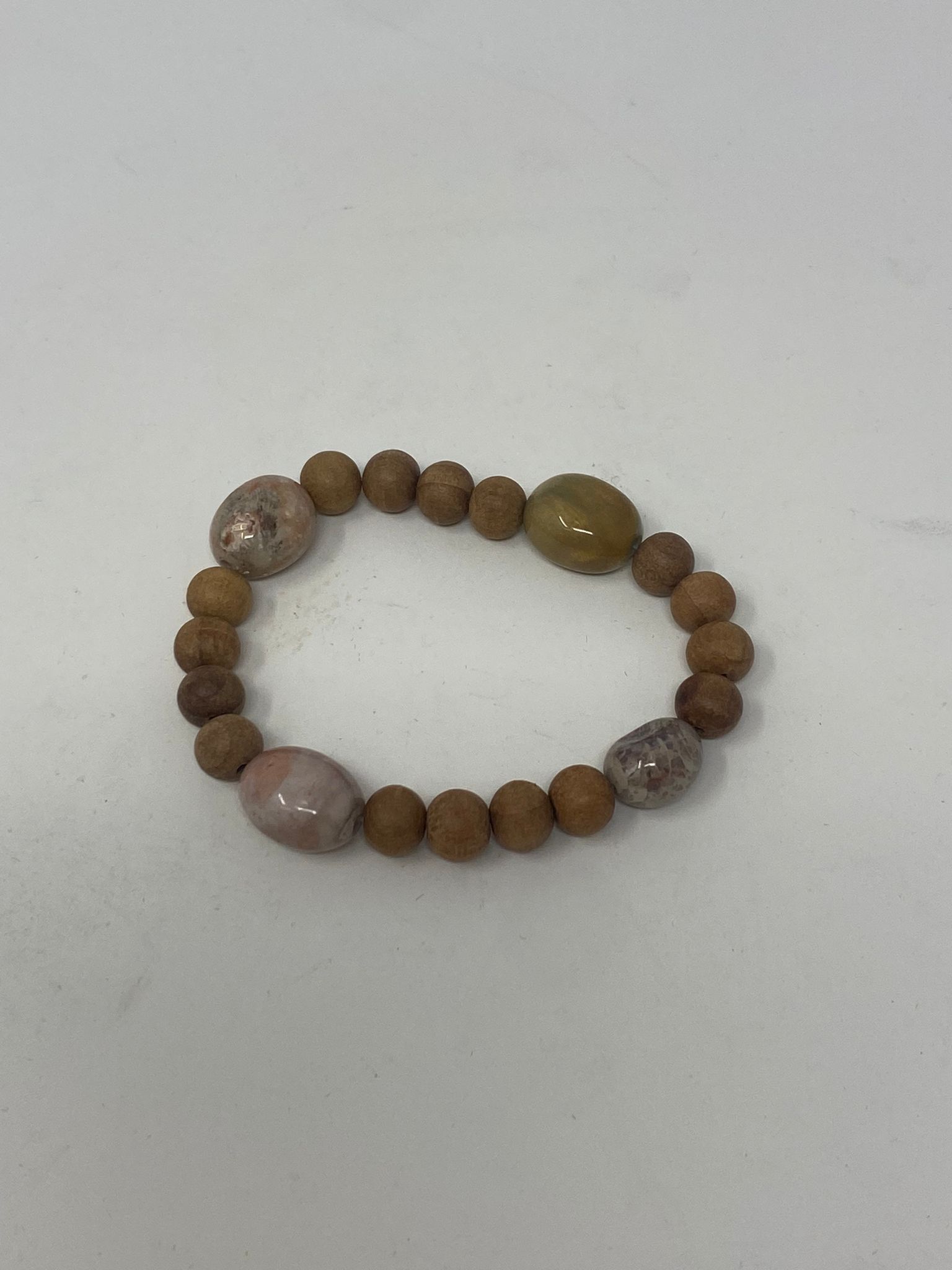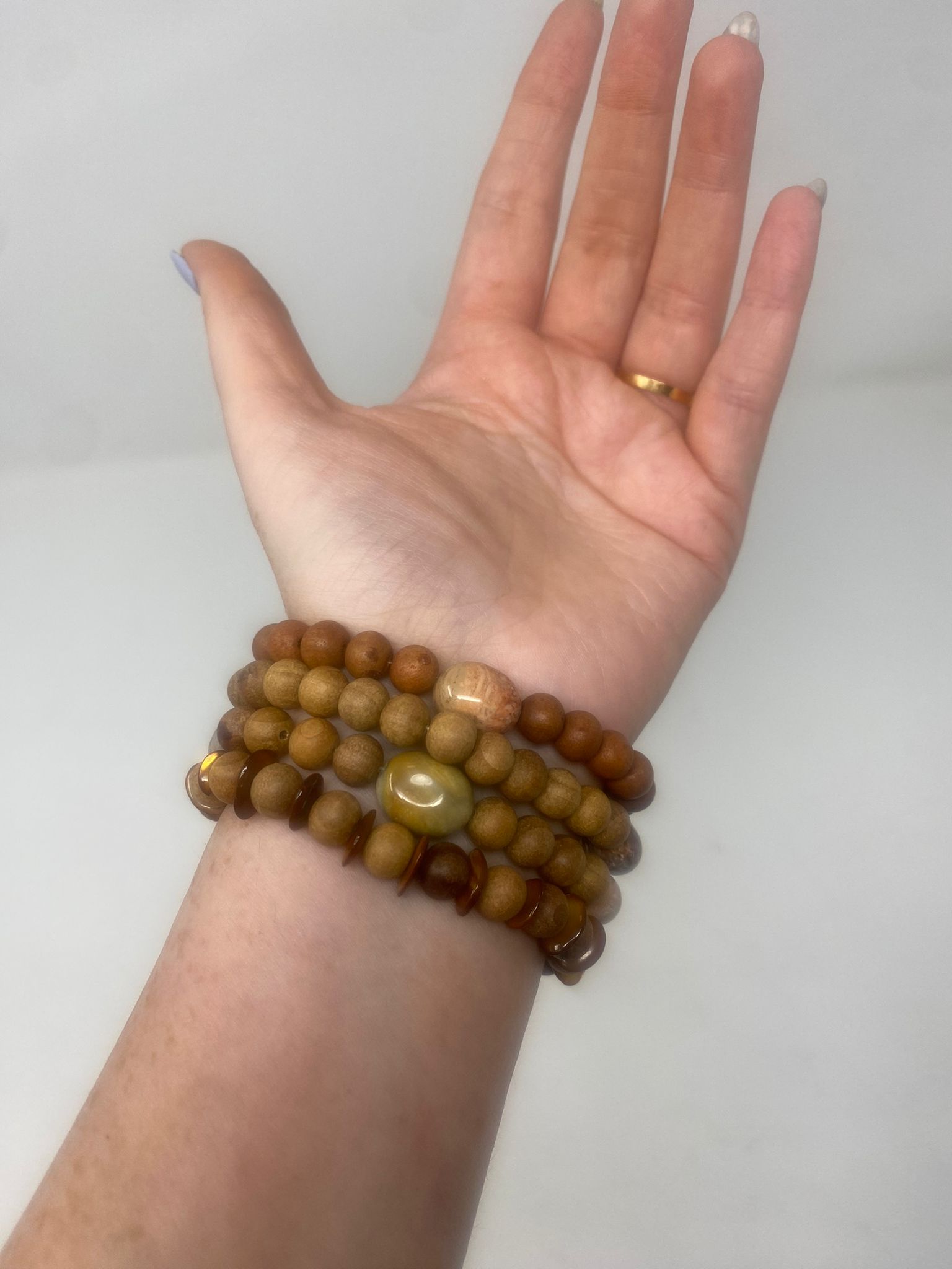 Strung with high-quality wooden beads and accented by natural stones, this set is perfect for stacking or gifting — a timeless accessory for the nature lover, beachcomber, or boho spirit.