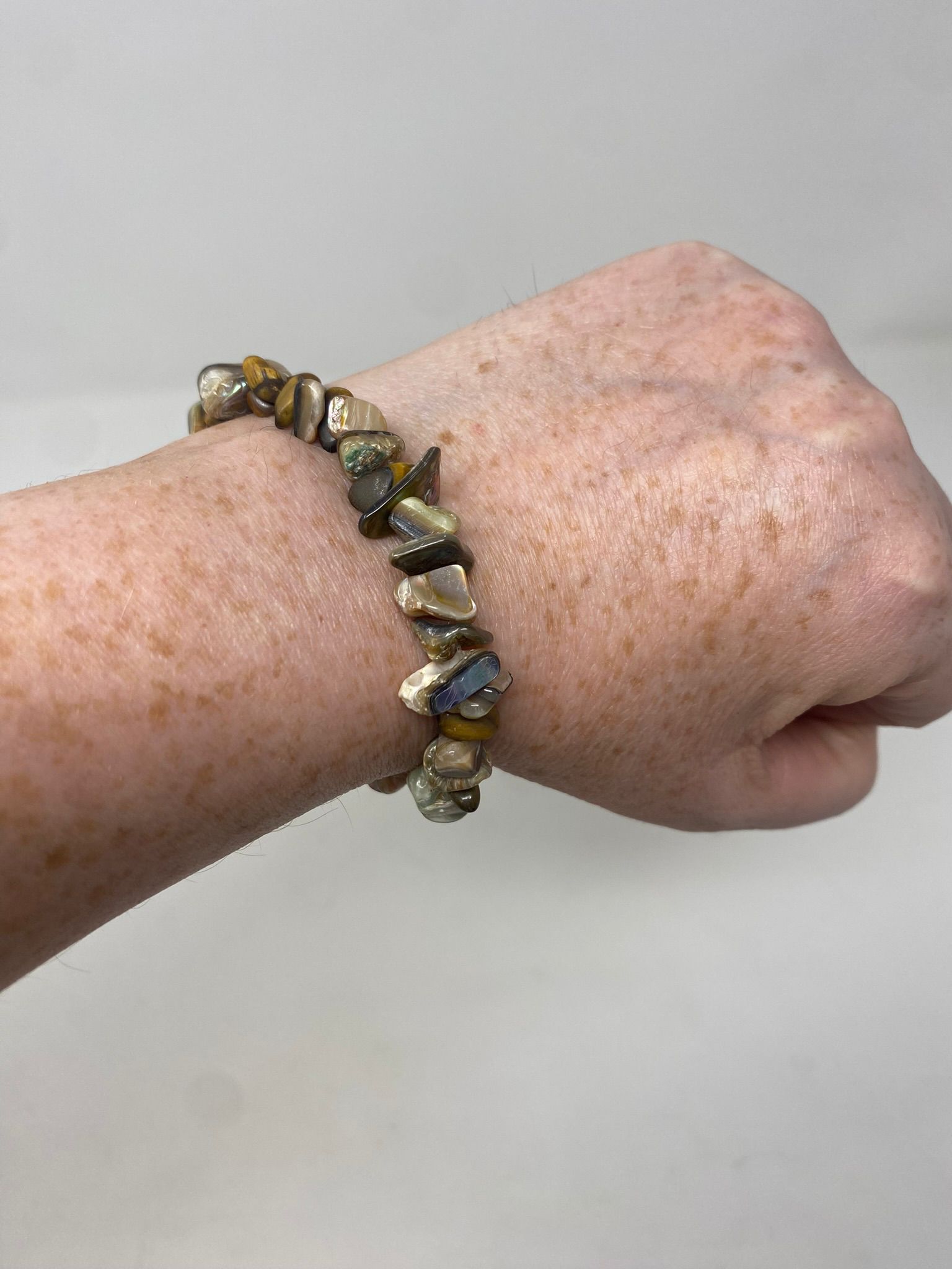 With its coastal palette of taupe, sand, moss, and stone, this bracelet brings a calming energy and timeless style that pairs perfectly with any outfit — from barefoot beach days to fireside evenings.