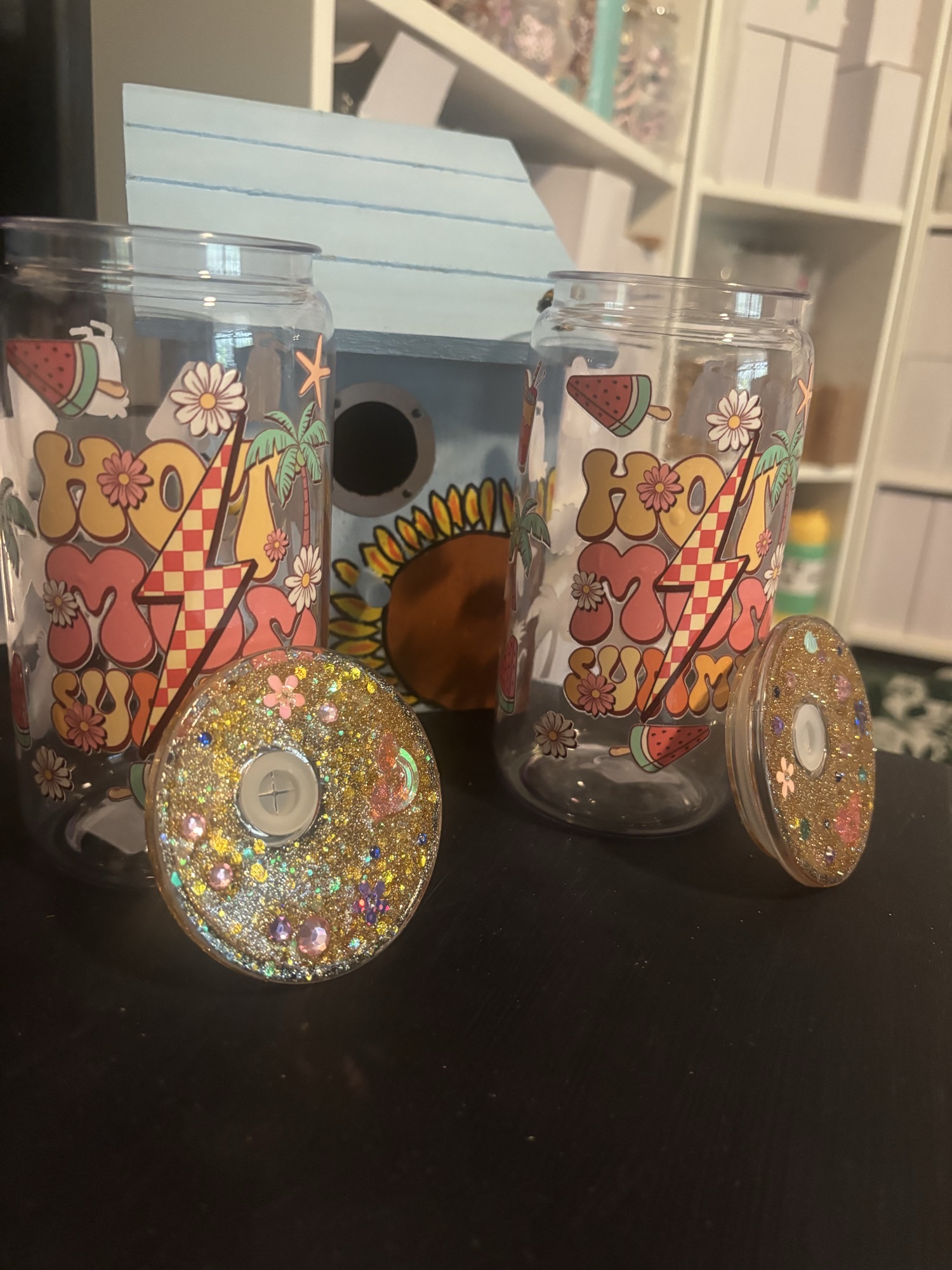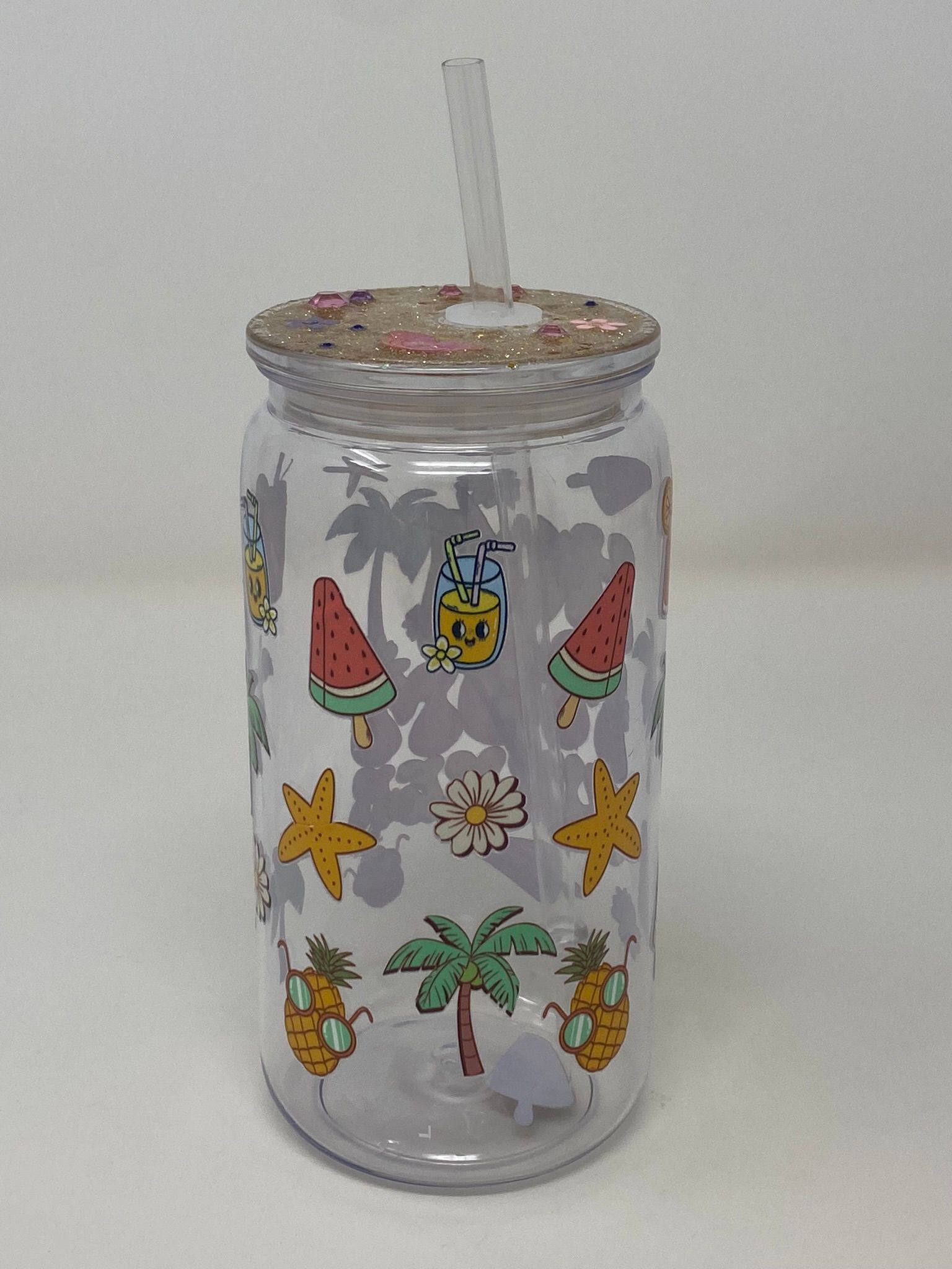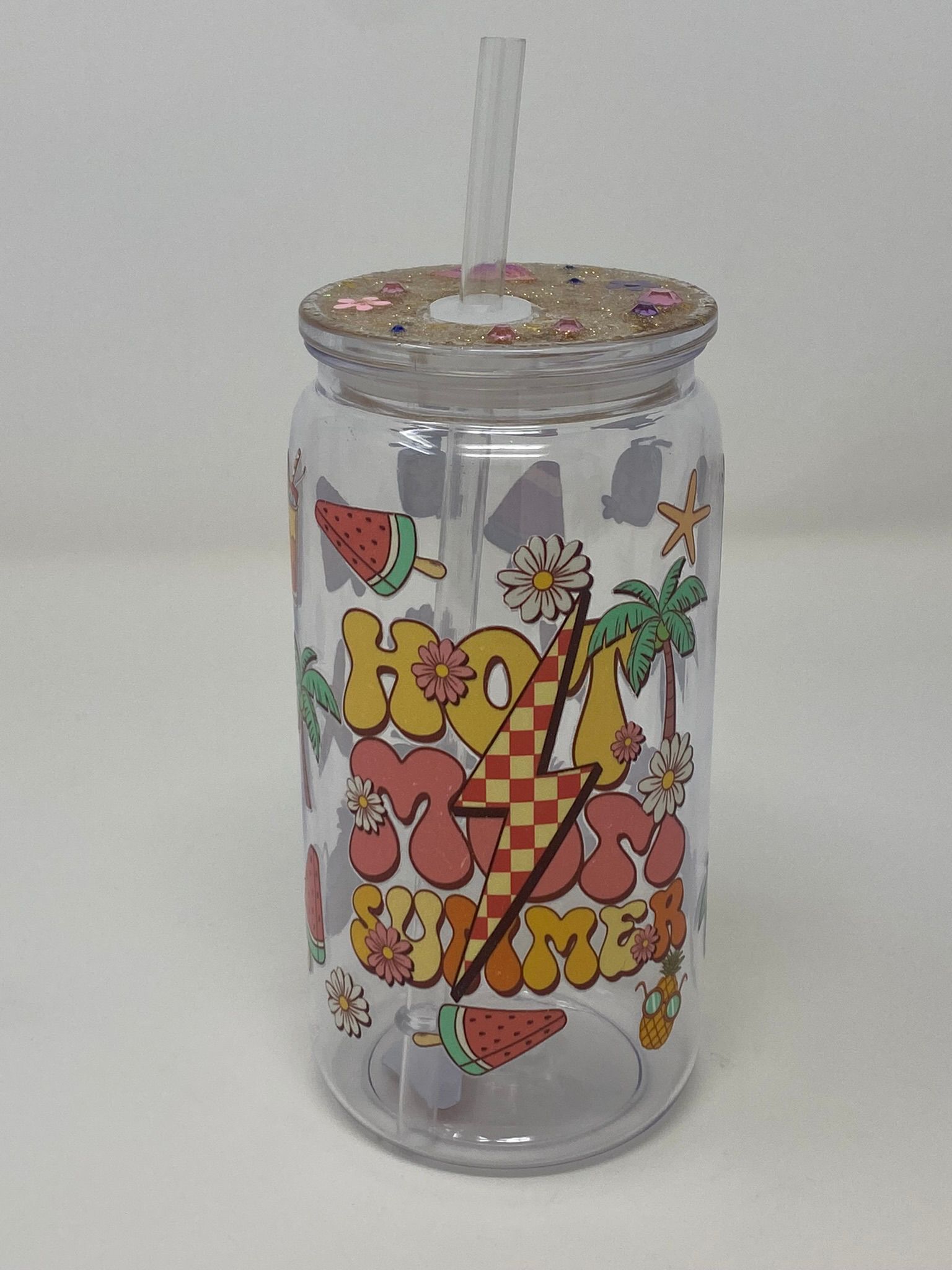 Made from durable plastic and designed with retro-inspired lightning bolts, florals, and fruity vibes, this tumbler is perfect for moms who bring the sunshine wherever they go. Paired with a glittery, gem-studded lid and reusable straw, it’s equal parts fierce and fun.