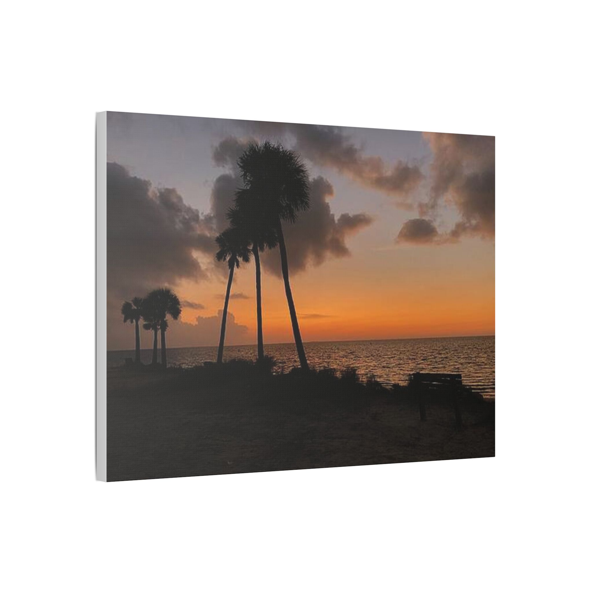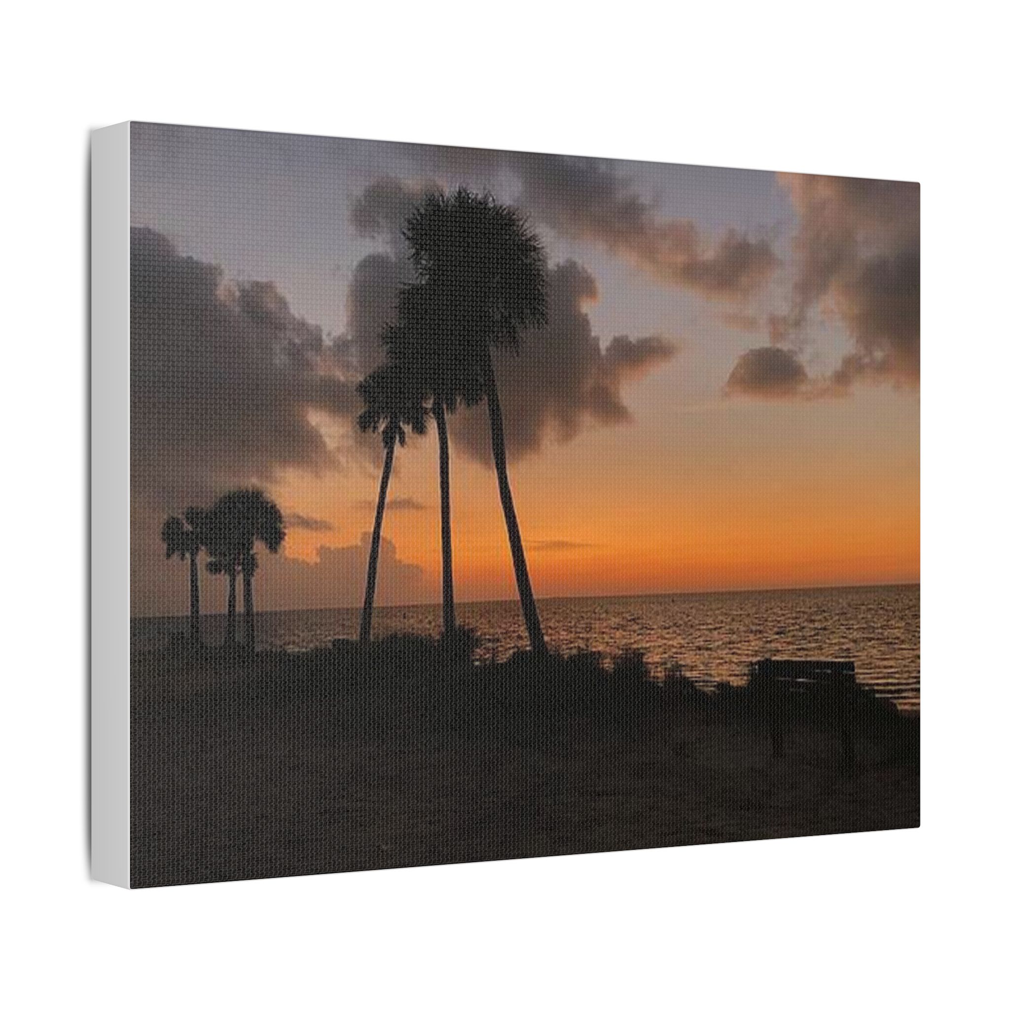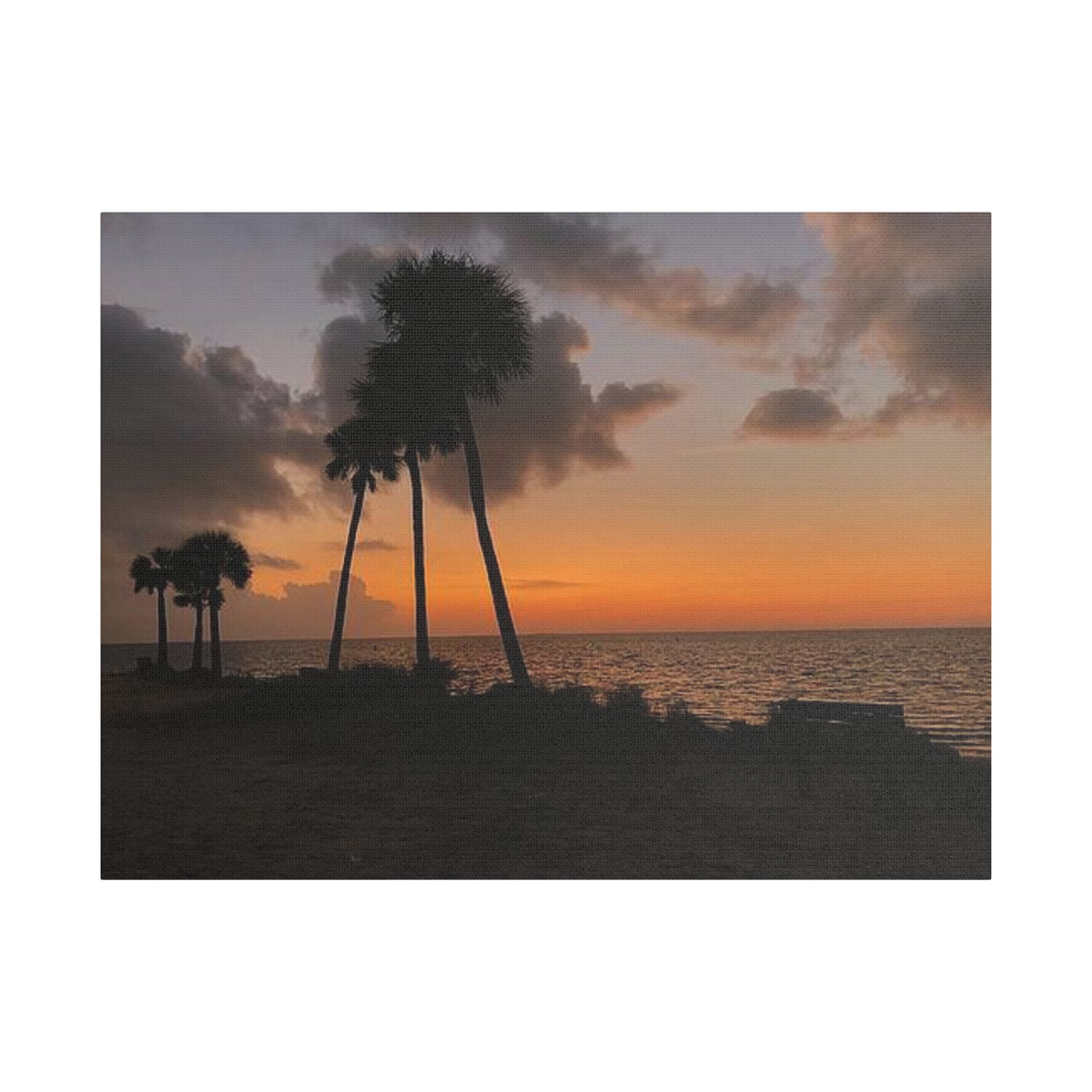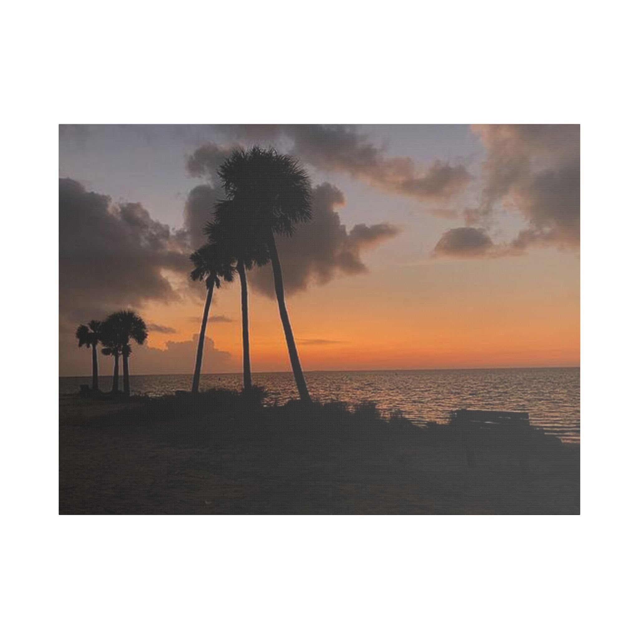Palm Pause by Hmh Art captures the serene hush of a Florida evening just as the sun kisses the horizon. Silhouetted palms lean gently toward calm Gulf waters, while an empty bench invites you to sit, breathe, and simply be. Printed on premium satin canvas and crafted in the USA, this piece blends warmth and wanderlust—bringing effortless coastal beauty into any space. A tribute to golden hour and the art of doing nothing.