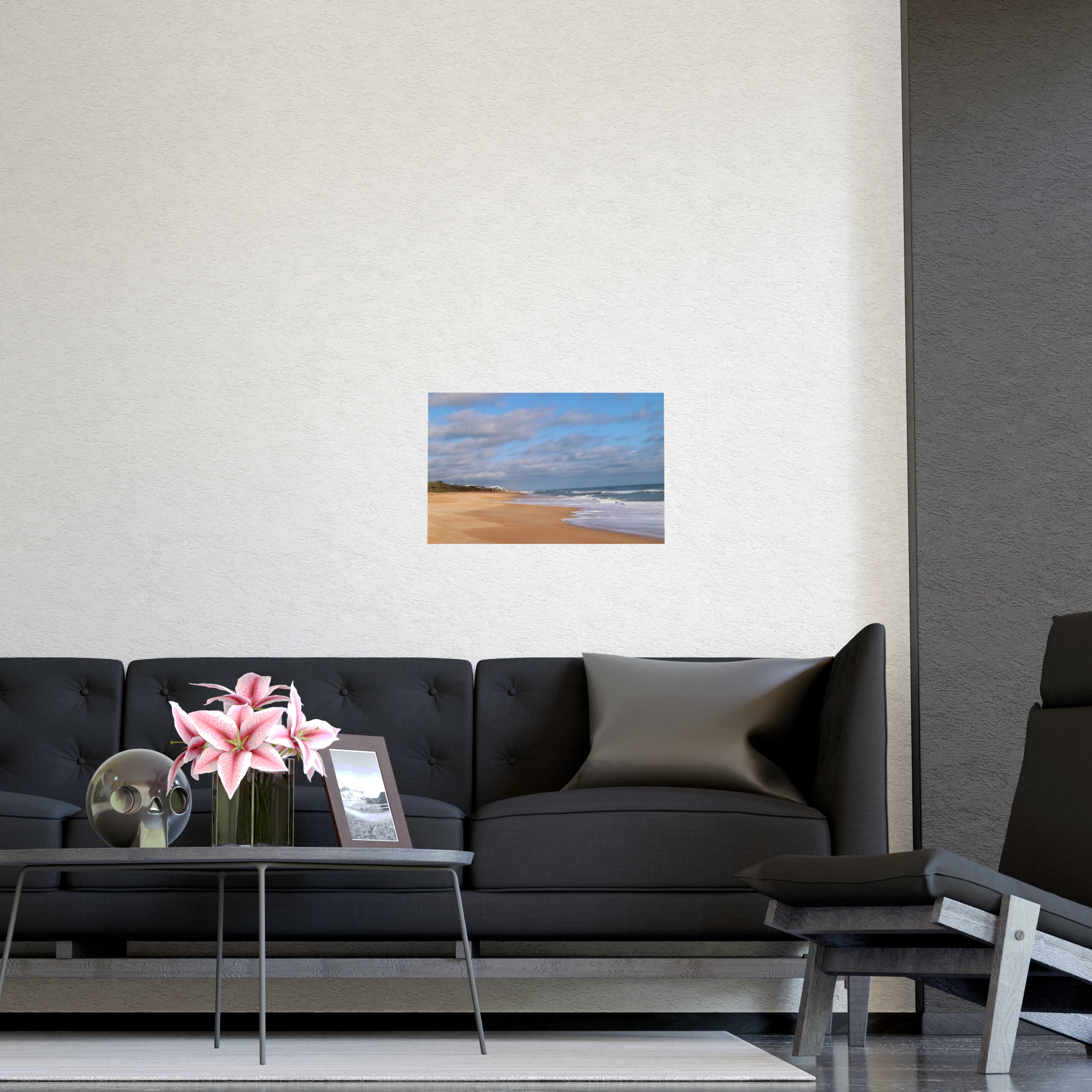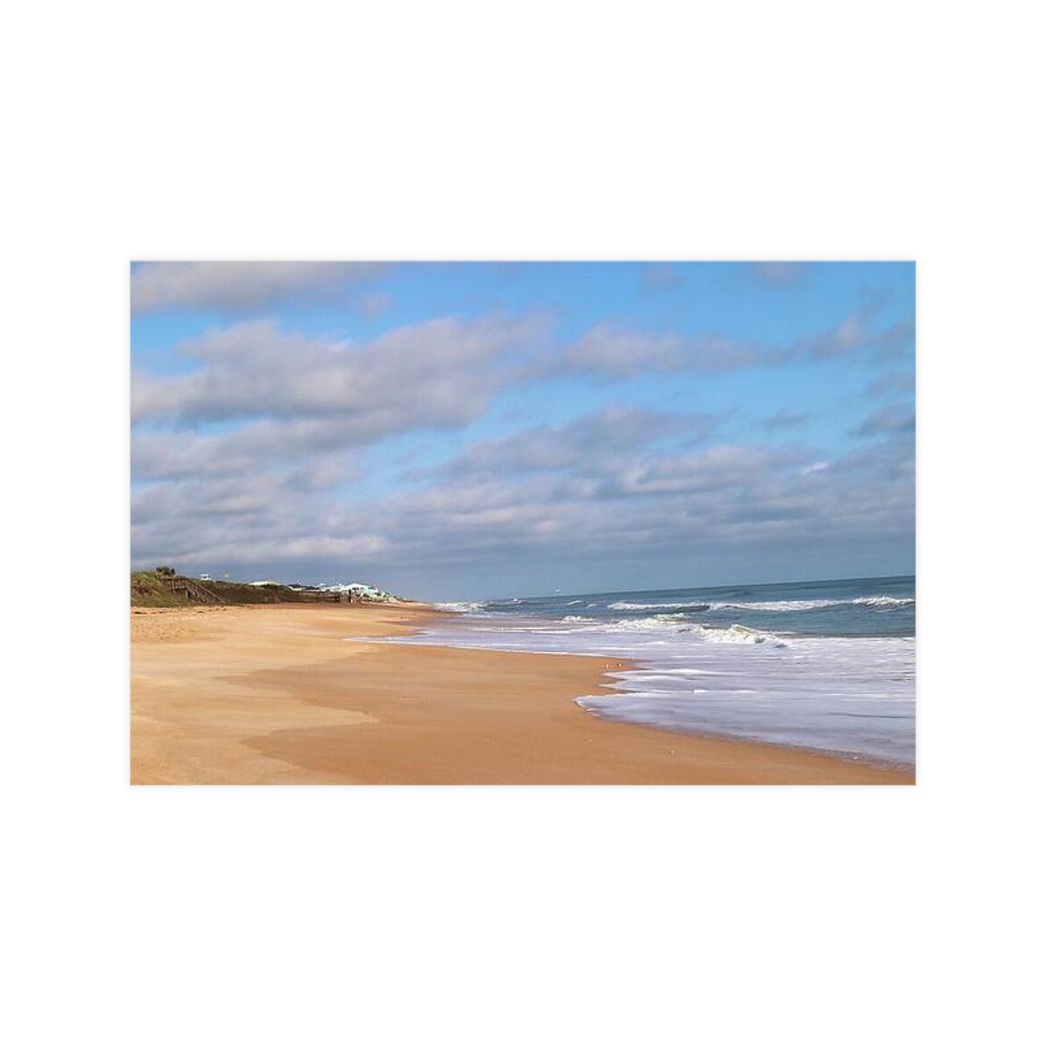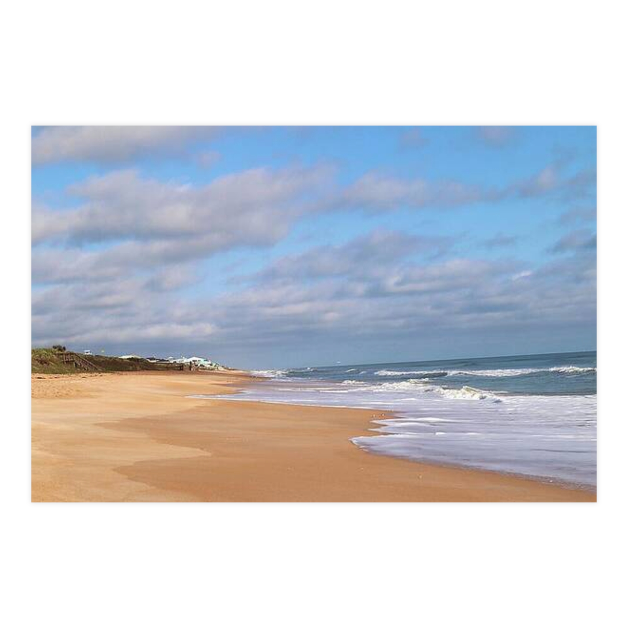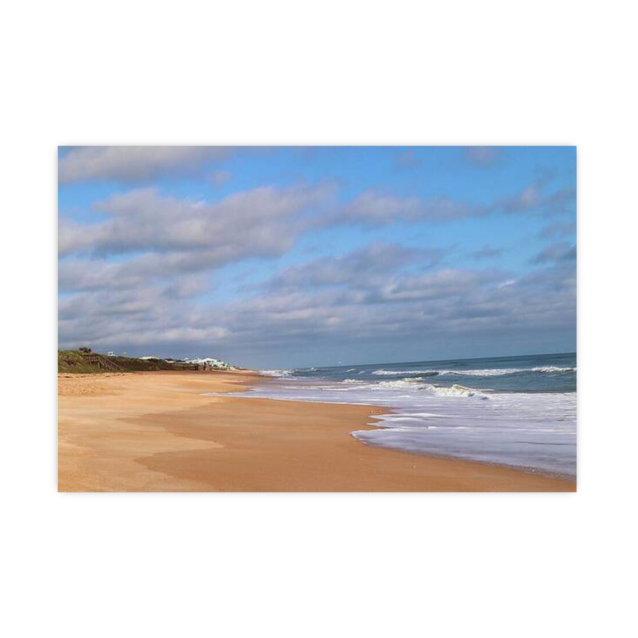Quiet Coastline by Hmh Art captures the soul-soothing solitude of an untouched morning beach. Soft golden sands melt into rolling waves under a sky brushed with gentle clouds, while distant cottages add a whisper of life to the vast stillness. This image celebrates the understated luxury of space, salt air, and the unhurried rhythm of coastal living—reminding us that sometimes, the best view is the one without footprints.