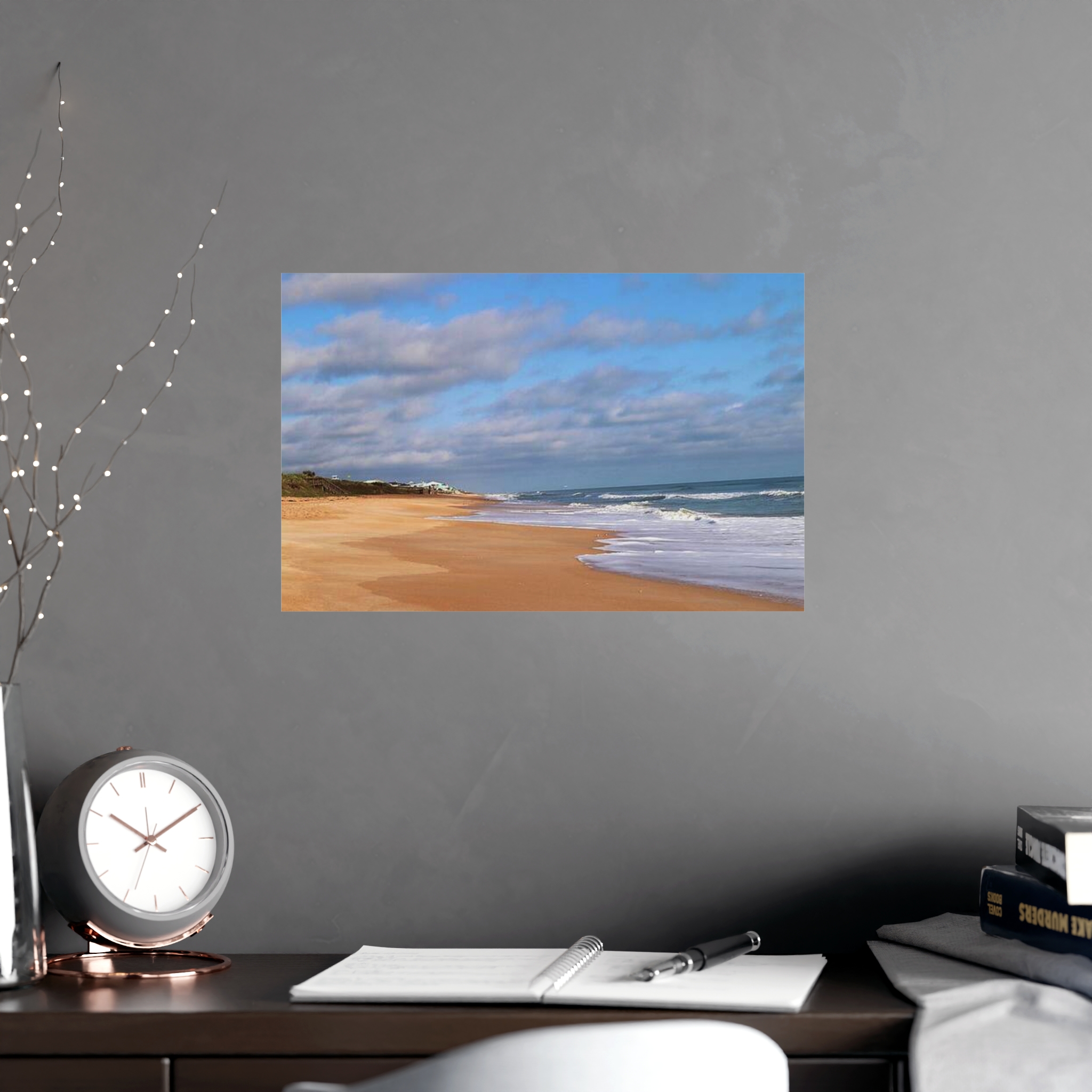 Printed on premium-quality paper and available in multiple sizes (unframed), this USA-made print brings warmth, light, and coastal calm to any space.