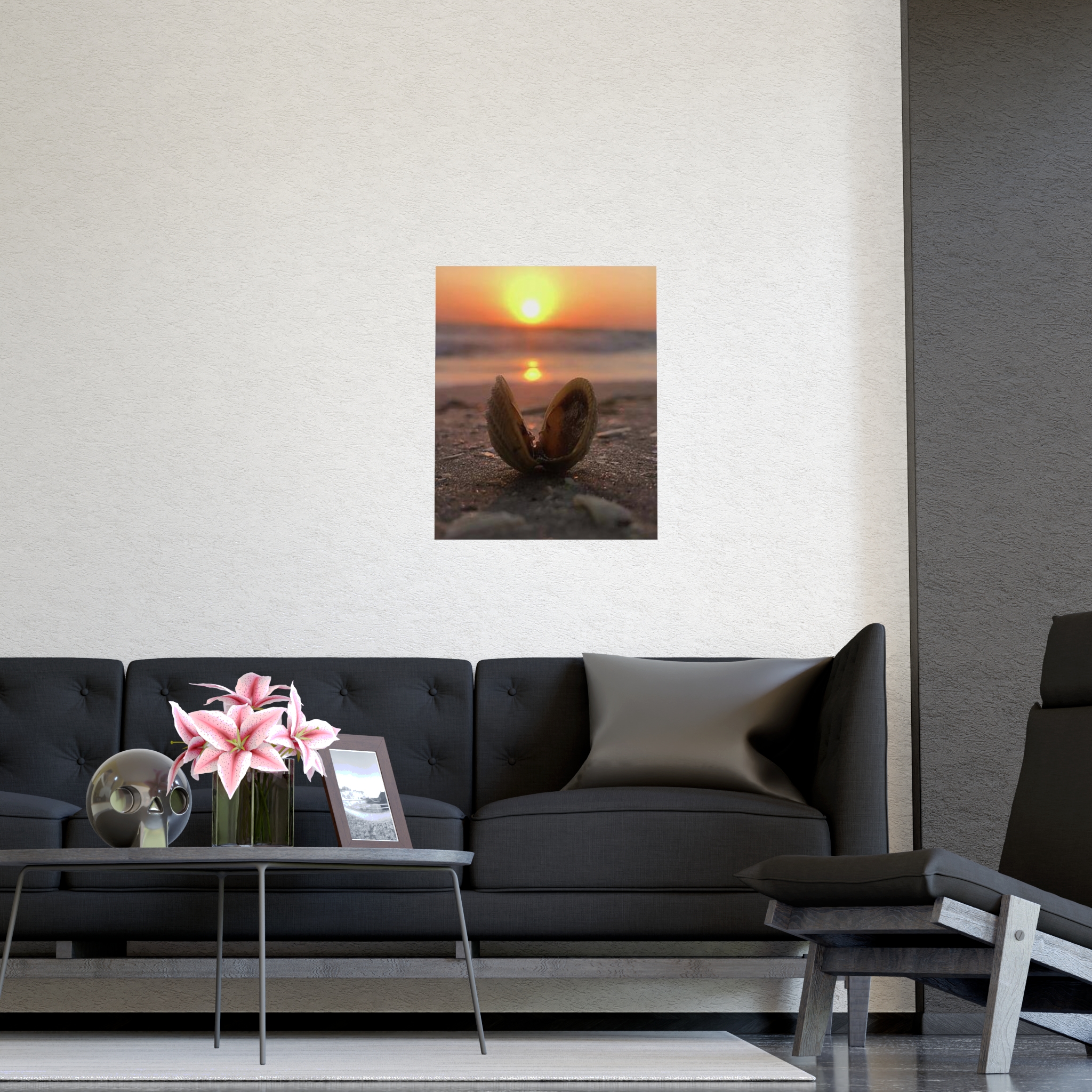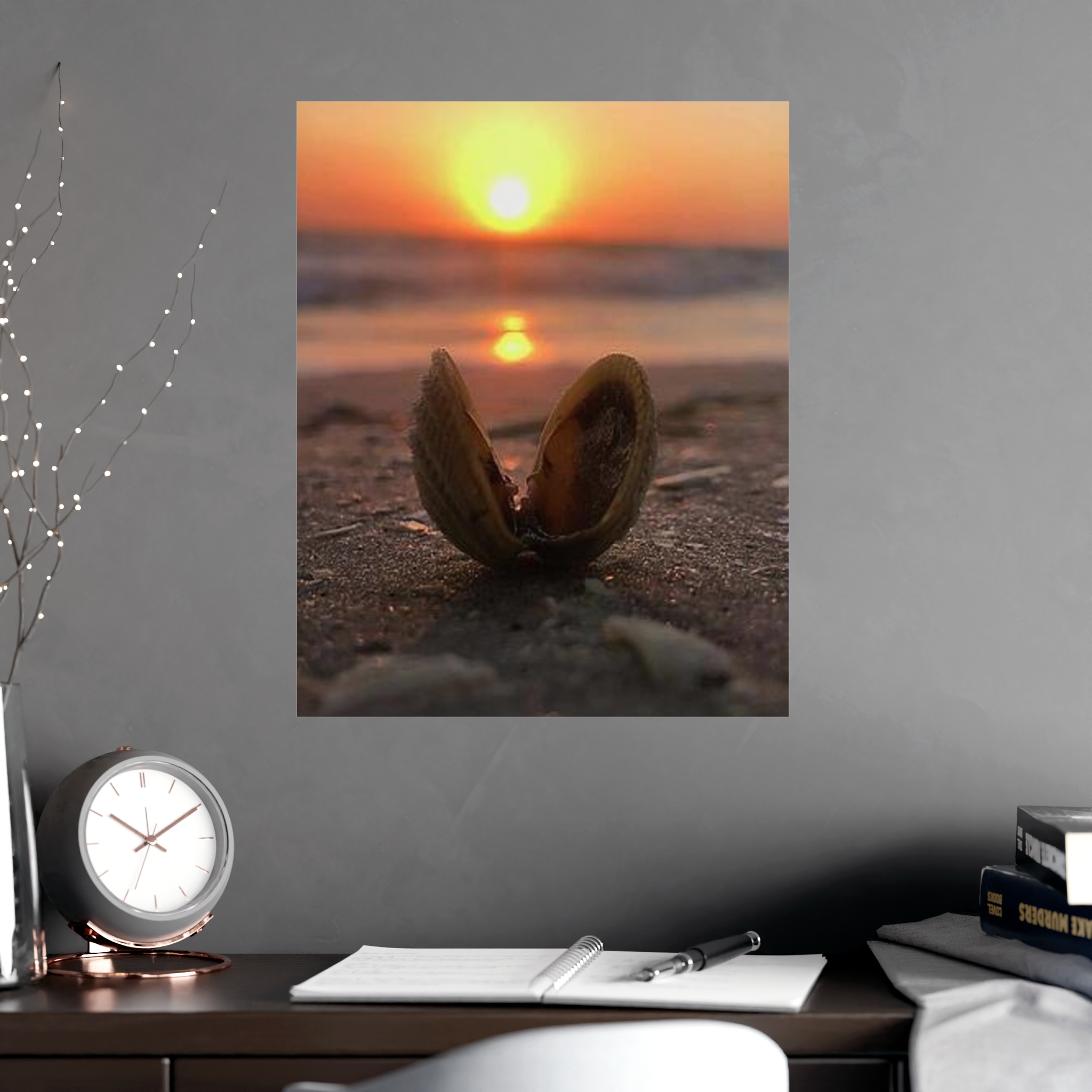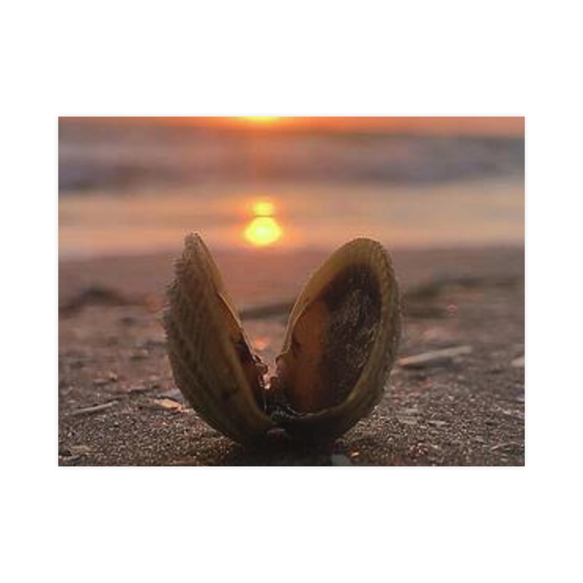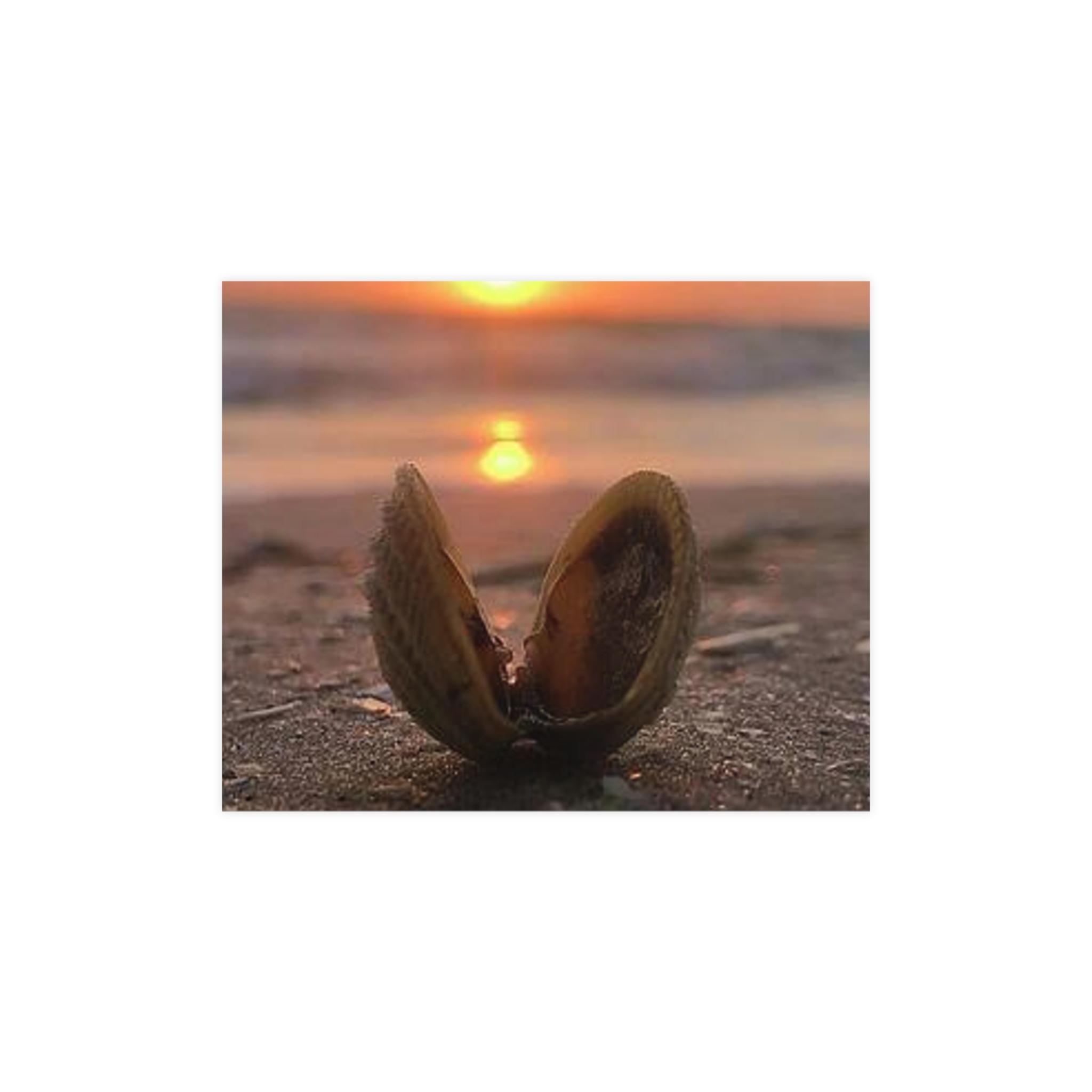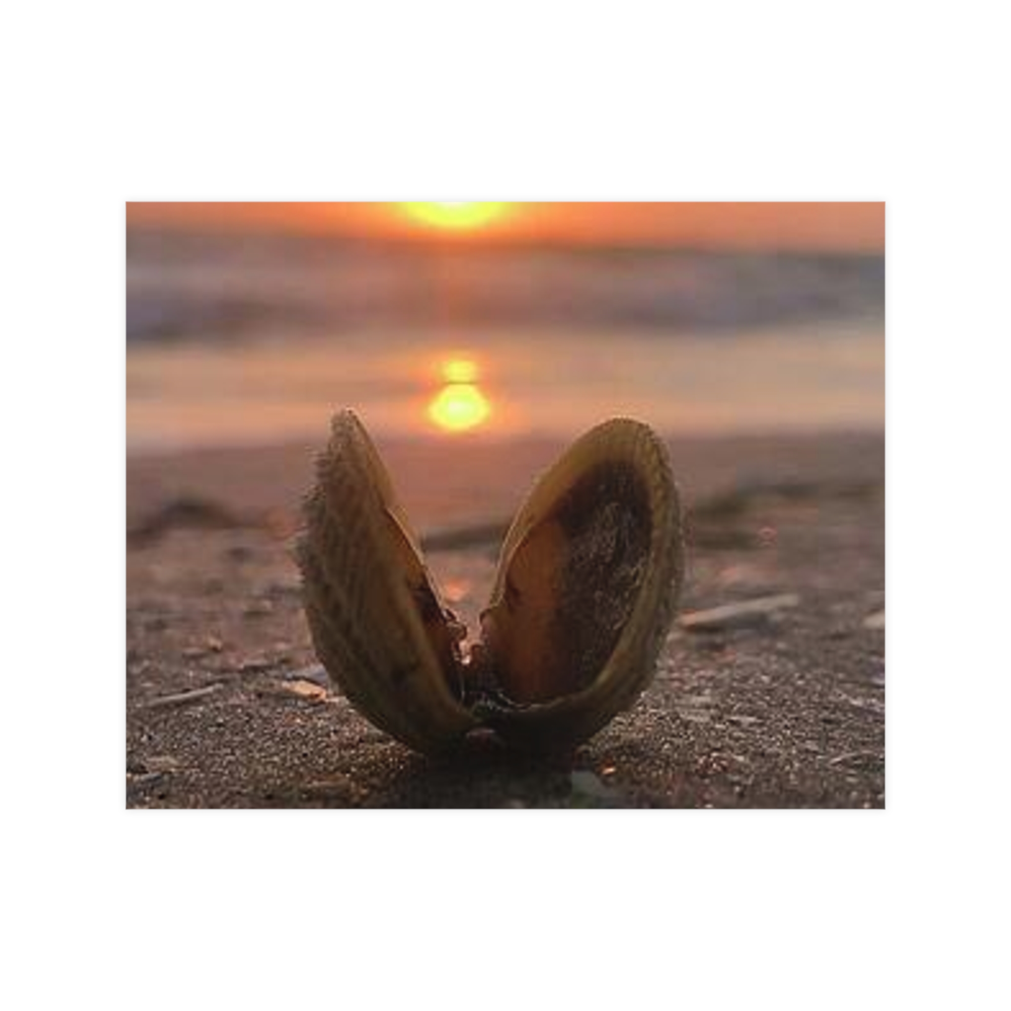 Captured by Hmh Art, Sunrise Treasure celebrates the quiet magic of morning by the shore. A single open shell cradles the first light of day, symbolizing new beginnings, peace, and the beauty found in simple moments. Each print is a reminder to slow down and let nature’s elegance shine through — the kind of calm only a coastal sunrise can bring.