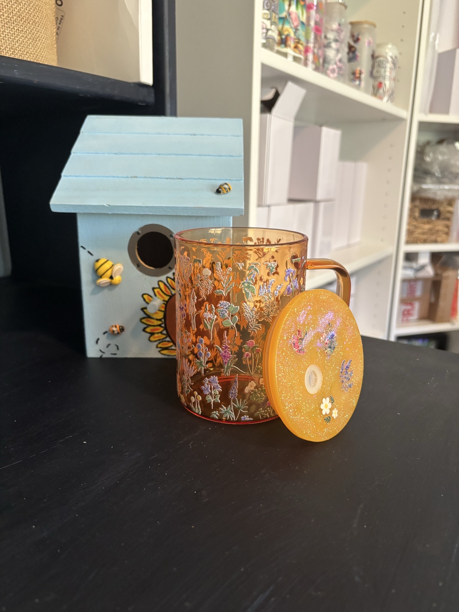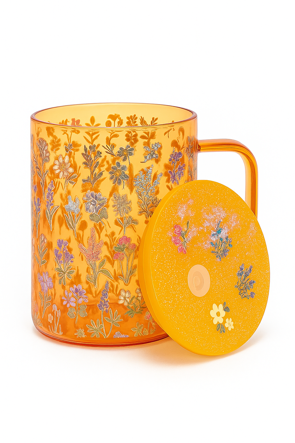 Brighten your day with the Sunshine Sips Floral Mug – a vibrant amber-toned glass tumbler adorned with a delicate wildflower garden design. With its sparkling floral lid and matching straw port, this mug adds charm to every sip. Whether you’re lounging on the patio or powering through your morning, it’s the perfect blend of functional and floral.